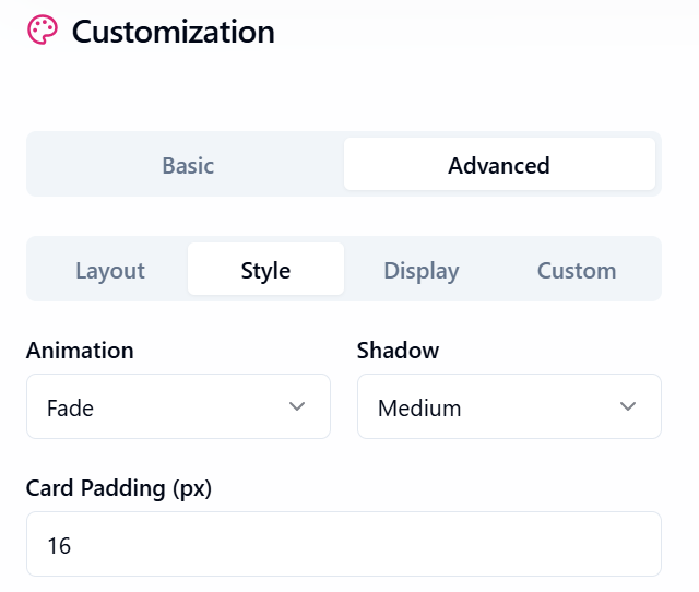 - Style: Add animations (fade, slide, bounce), tweak shadows, and adjust padding.