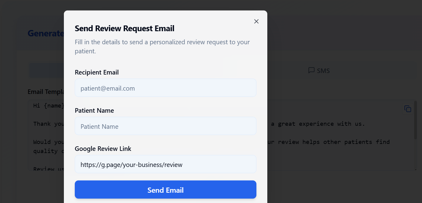 Send email invitations for reviews directly to your patients or clients using Sprypt’s easy, customizable email templates—all from your dashboard.