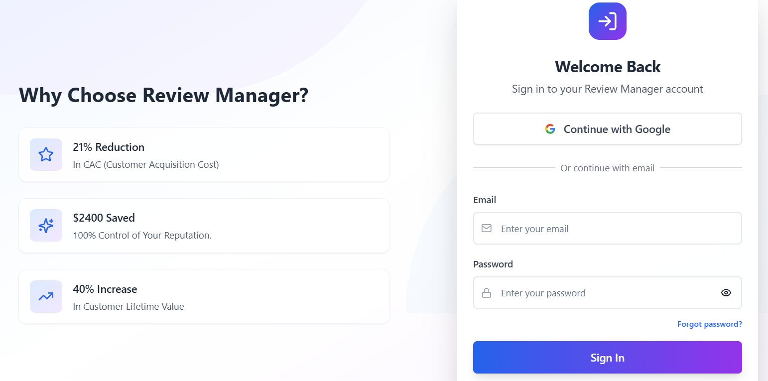 1. Log In to Your Review Manager Dashboard