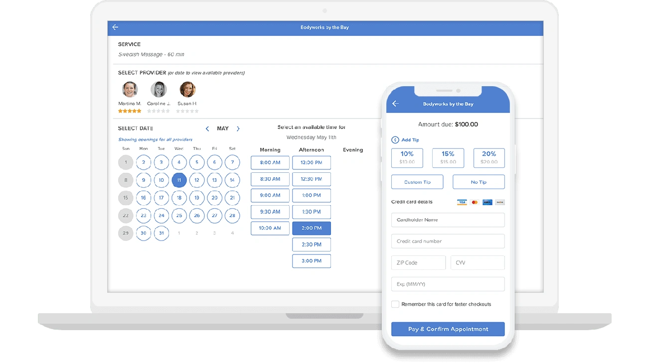 Multi-Channel Booking - Integration with Apple Maps, Instagram, Facebook, Yelp, plus embeddable widgets.
