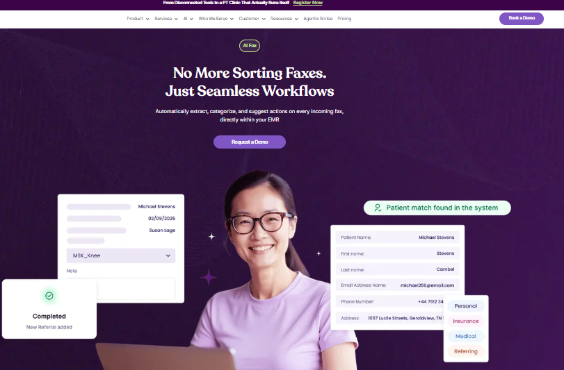 - Fax AI (automatically reads, routes, and files incoming faxes — POC, referrals, auth documents)