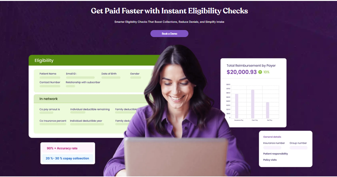 Mid-to-large healthcare practices seeking an all-in-one revenue cycle management solution with integrated eligibility verification.