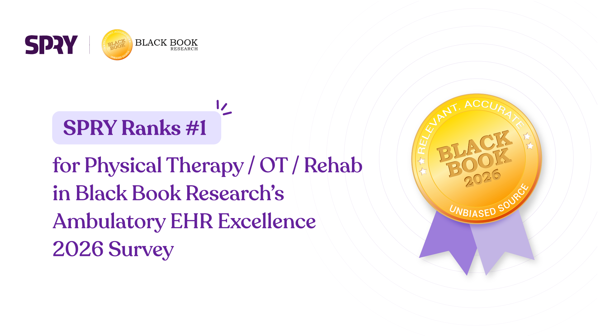 WILMINGTON, DE — January 19, 2026 — SPRY Therapeutics Inc., a leading provider of AI-native EMR and revenue cycle management solutions for outpatient rehabilitation, today announced it has been ranked #1 for Physical & Occupational Therapy / Rehab in the Black Book Research Ambulatory EHR Excellence 2026 survey rankings.